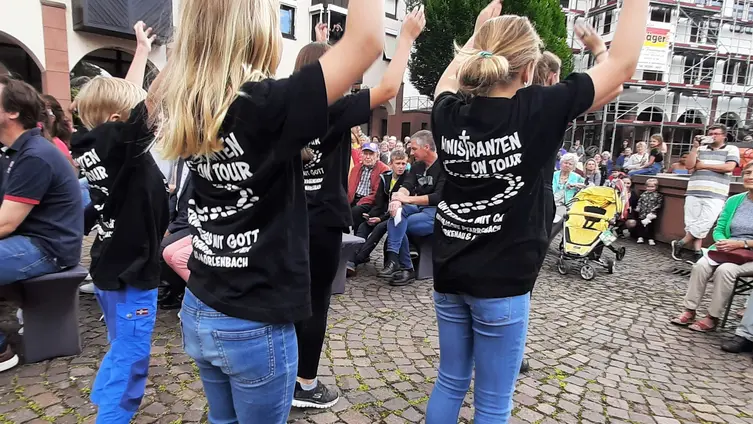Schwung brachten die Ministrant*innen auf den Rathausplatz, die eine Choreographie zu "Aufstehn, aufeinander zugehn" darboten.