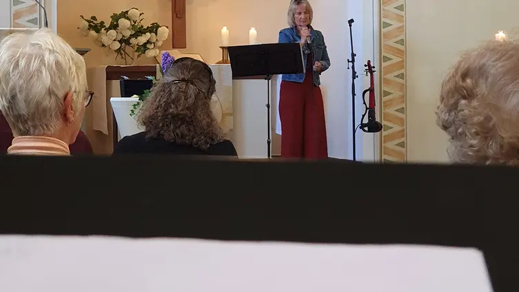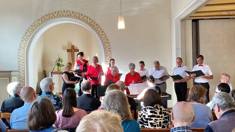 Nach der Begrüßung durch die Vorsitzende Claudia Lidy-Gruber luden bekannte Songs wie „Ich war noch niemals in New York“ von Udo Jürgens oder „Bora – Bora in Tahiti“ von Tony Marshall die Gäste zum Schunkeln ein. Aber auch geistliche Chor-Sätze wie „Der Herr, mein Hirte“, „Ich hebe meine Augen auf“ und „Preis und Anbetung“, von Sophia Brumby dirigiert und Rosemarie Brumby an der Orgel begleitet, beeindruckten die rund 70 Konzertbesucher. Verbindende Wortbeiträge der Chormitglieder führten durch das Konzert.