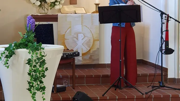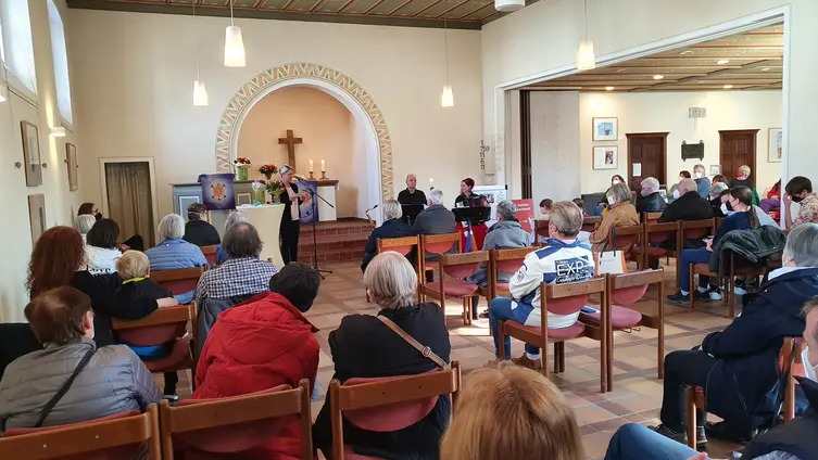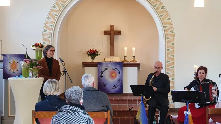 An der Andacht haben etwa 30 Besucher teilgenommen, darunter auch Frauen aus der Ukraine. Das Friedensgebet wurde von Helmut Sürie gehalten. Die musikalische Gestaltung hatte Florian Sürie übernommen.