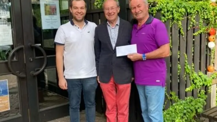 Die Spende wurde von Helmut Sürie, Mitglied unserer Gemeinde, an den 1. Beigeordneten Bodo Kalesse sowie Herrn Jäger aus dem Finanzbereich der Gemeinde Mörlenbach übergeben.