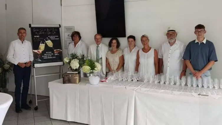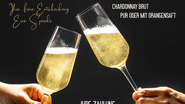 Im Foyer des Bürgerhauses wurden zwei Sekt-Stände aufgebaut und den Festgästen als Aperitif ein Glas Sekt angeboten. Der Preis: freie Entscheidung der Gäste, eine Spende für die Ukraine-Hilfe der Gemeinde Mörlenbach. Da die Kosten der Aktion von einer Privatperson übernommen wurden, kam jeder gespendete Euro in voller Höhe der Flüchtlingshilfe zugute. Die Initiative wurde von den Gästen sehr positiv aufgenommen und so konnte sich die „Stand-Besatzung“ über eine Spendensumme von 710 € freuen.