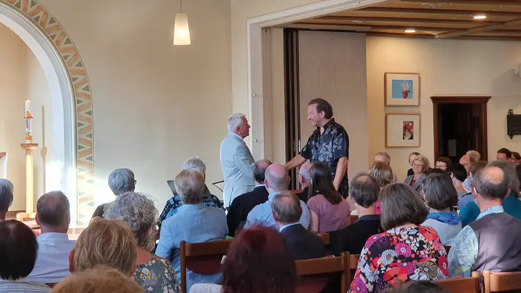 Alle Gäste waren begeistert und als zum Abschluss noch einmal der Udo-Jürgens-Song intoniert wurde, klatschte das Auditorium den Takt dazu. Mit langanhaltendem Applaus bedankten sich die Konzertbesucher beim Chor und allen Beteiligten. Die Qualität des Vortrags hatte überzeugt und der Funke des mit Freude singenden Chores war übergesprungen. Ein erbauliches Ereignis, zu dem hoffentlich noch oft eingeladen wird. (Helmut Sürie, Beauftragter für Ökumene der ev. Kirchengemeinde)