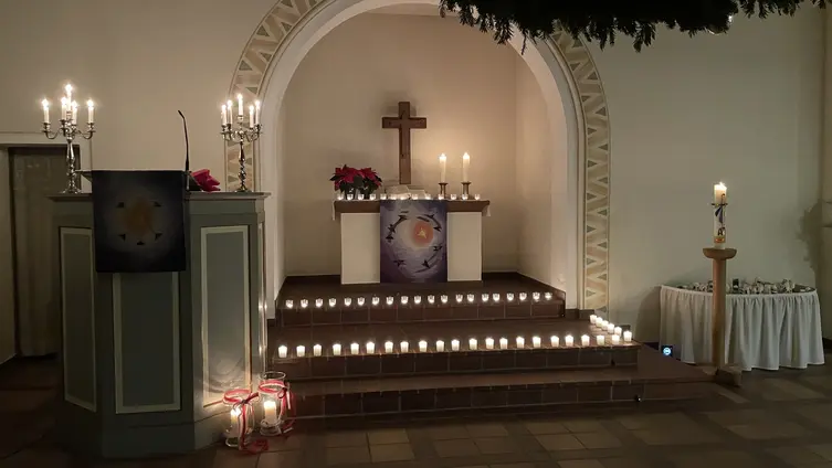Die Friedensgebete finden an jedem ersten Montag im Monat um 19 Uhr statt, jetzt in der kalten Jahreszeit in unserer Kirche.