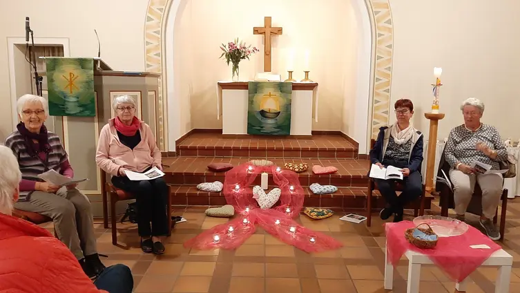 Nach langer Zeit konnte unter dem Motto „Ein Lächeln für dich und mich“ wieder eine Lucia-Andacht in unserer Kirche gefeiert werden, wofür das Team die rosa Schleife „Pink Ribbon“ auf den Altarstufen drapierte, die heute weltweit als unverkennbares Symbol im Bewusstsein gegen Brustkrebs steht.