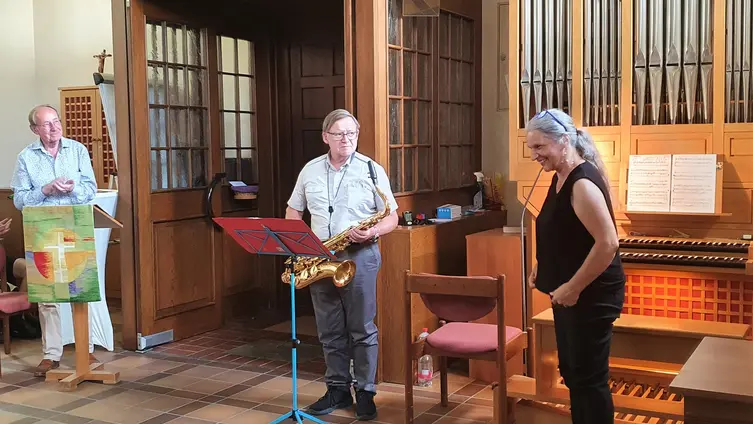 Ich bedanke mich ganz herzlich bei meiner lieben Kollegin Edith Unrath-Dörsam für die gute und unkomplizierte Zusammenarbeit, beim Kirchenvorstand und bei allen, mit denen ich zusammenarbeiten durfte in dieser Zeit. Ich zähle sie jetzt bewusst nicht auf, weil ich sonst garantiert jemanden vergesse! Ich bin nicht aus der Welt!