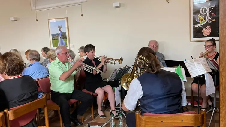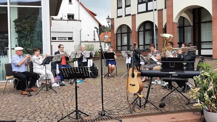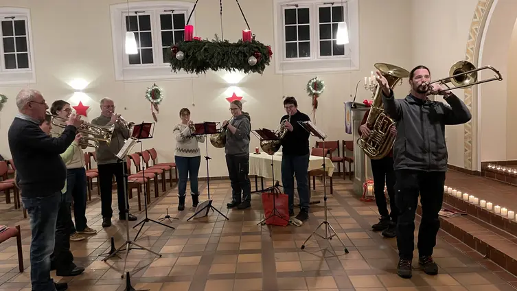 Den Abschluss bildete die „Kleine Weihnachtsmusik“ unseres Posaunenchors, bei der neben Klassikern vor allem verjazzte Weihnachtslieder begeisterten. Im Rahmen des Kurrendeblasens waren die Spieler*innen bereits in Vöckelsbach und Weiher unterwegs und wärmten sich in der Kirche etwas auf, bevor es zur letzten Station nach Bonsweiher ging.