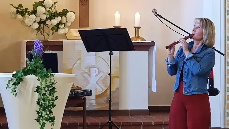 Beim anschließenden Matinée-Konzert präsentierte Bettina Alms ihr breitgefächertes Repertoire mit Gesang, Flöte und Violine vor einem begeisterten Publikum.
