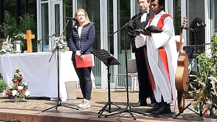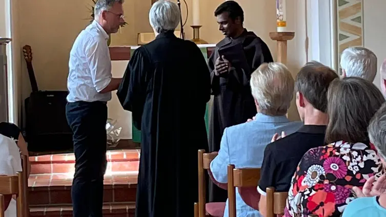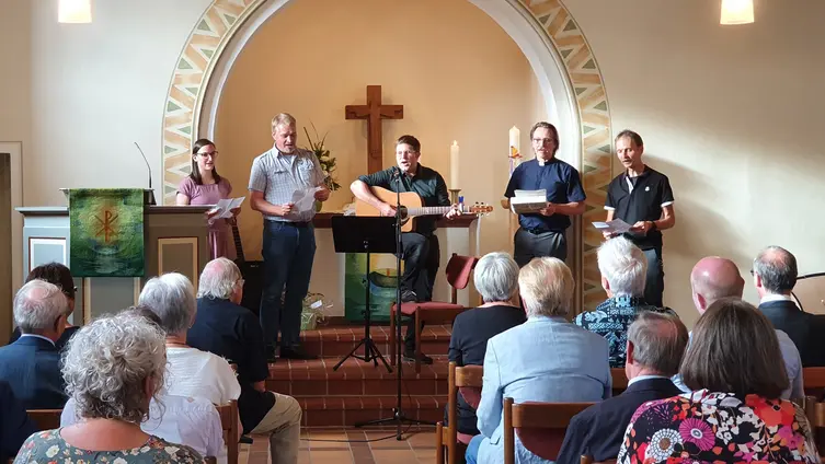 Pfarrer Clemens Bittlinger und Pater Cyril von der kath. Gemeinde gestalteten gemeinsam mit dem Posaunenchor und Carolin Raschke am Klavier diesen besonderen Gottesdienst.