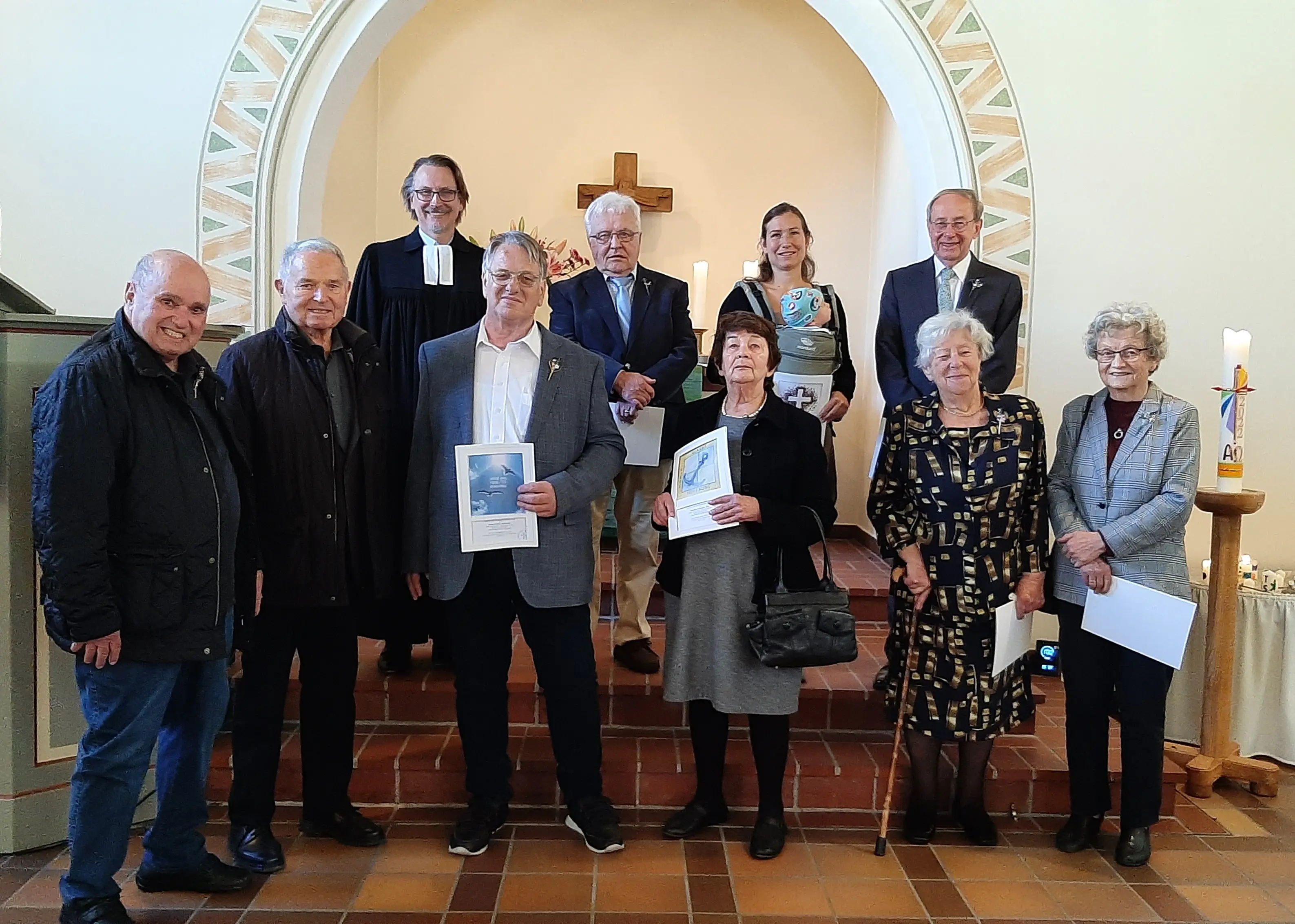 Der Festgottesdienst wurde von Pfarrer Dr. Buß, dem Posaunenchor und Franz Herb an der Orgel gestaltet. Nach dem anschließenden Sektempfang auf dem Zimmerplatz traf sich die Jubelgesellschaft zum gemeinsamen Mittagessen in Bonsweiher, wo der Festtag in gemeinsamen Erinnerungen in großer Runde am Nachmittag ausklang.