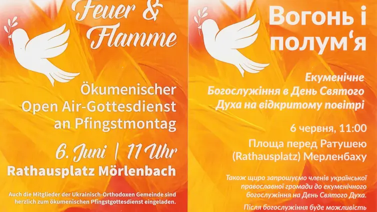 Herzlich eingeladen waren ausdrücklich auch die Mitglieder der Ukrainisch-Orthodoxen Gemeinde! Der Gottesdienst wurde von Frau Byk auf Ukrainisch übersetzt. Bei dem Lied "Sei behütet" sang die gesamte Gemeinde gemeinsam den Refrain auf Ukrainisch.
